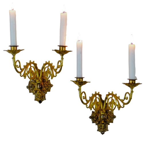 Antique FRENCH Pair Gilded Bronze Wall Light Sconce Candlestick 19TH Church