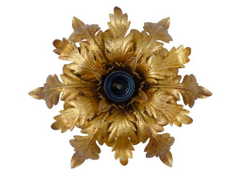 Vintage Mid Century Italian Ceiling Wall Light Gilded Tole Chandelier MASCA