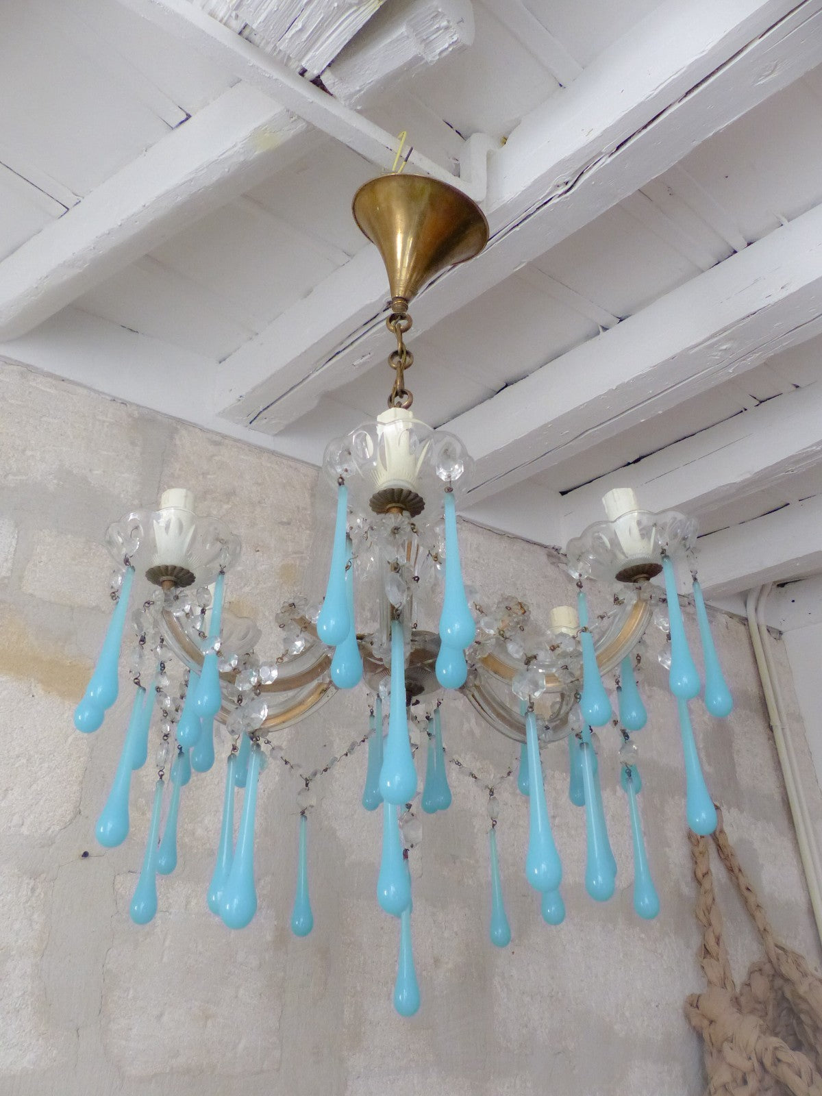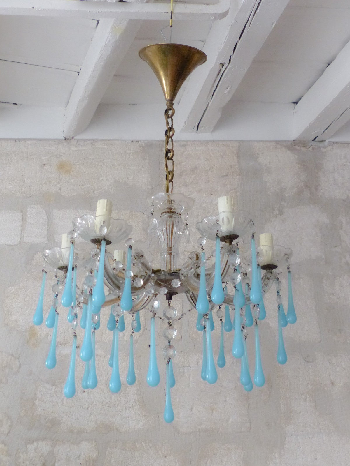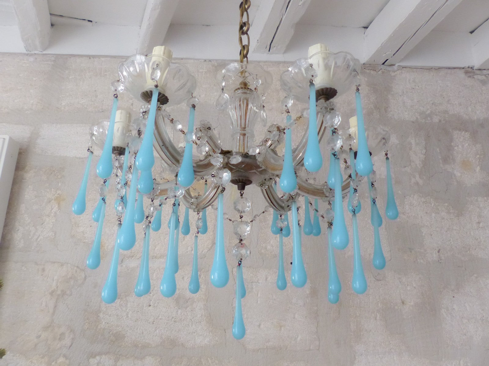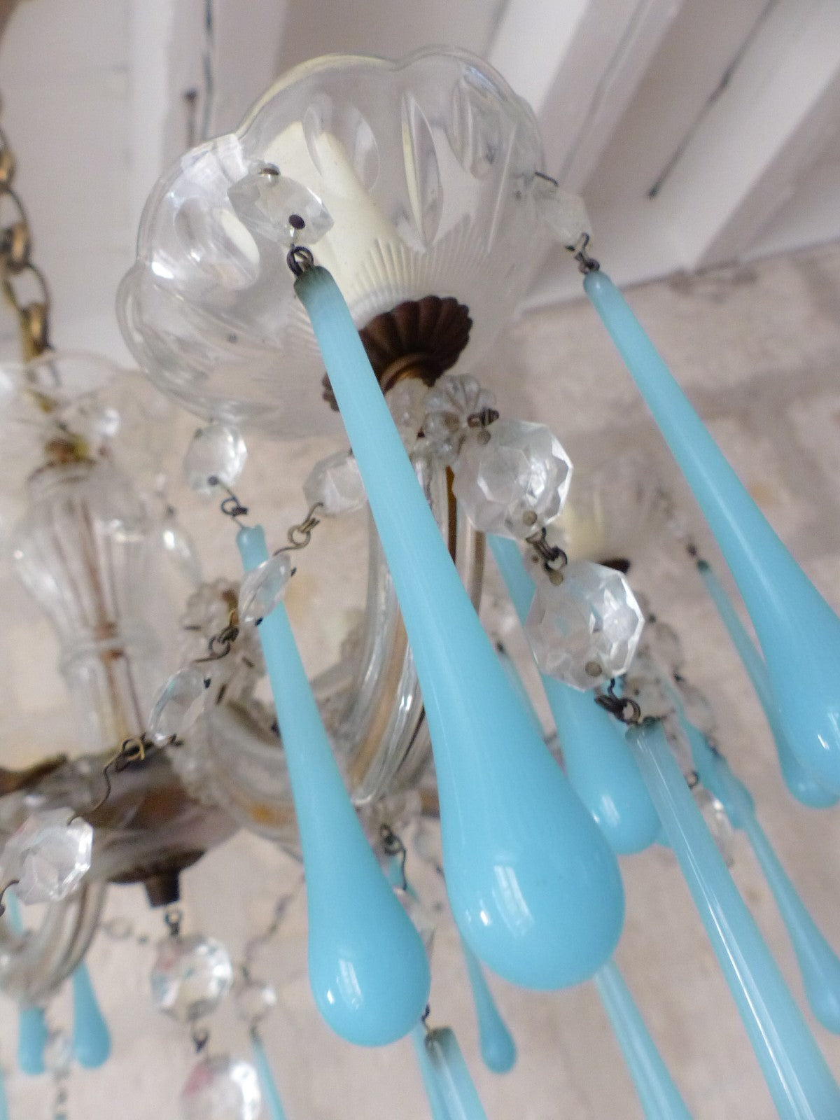 Aqua blue opaline drops, Venetian work,