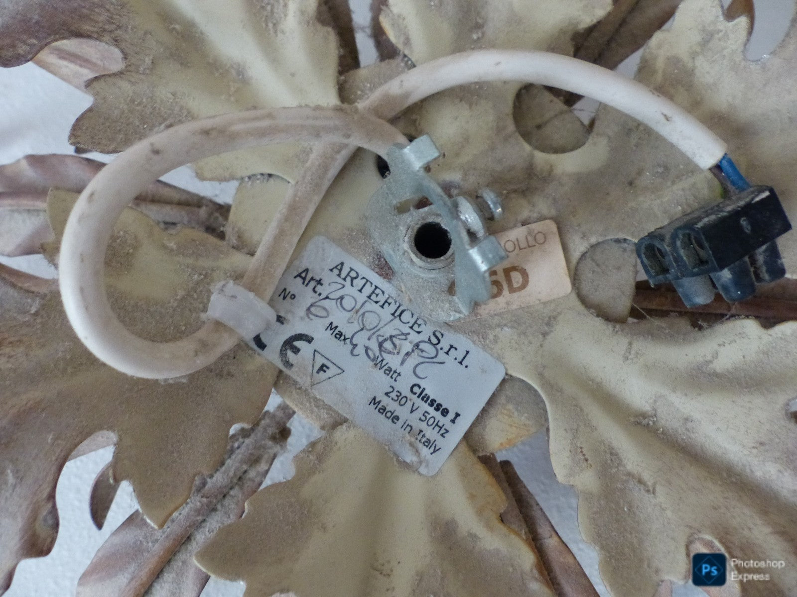 Gorgeous Italian (1980's) gilded & silverplated metal wall light or ceiling,