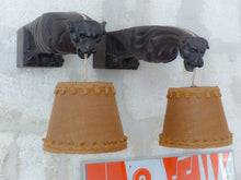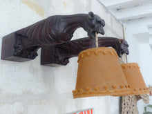 Gorgeous antique pair of wall lights, sconces made of carved wood.