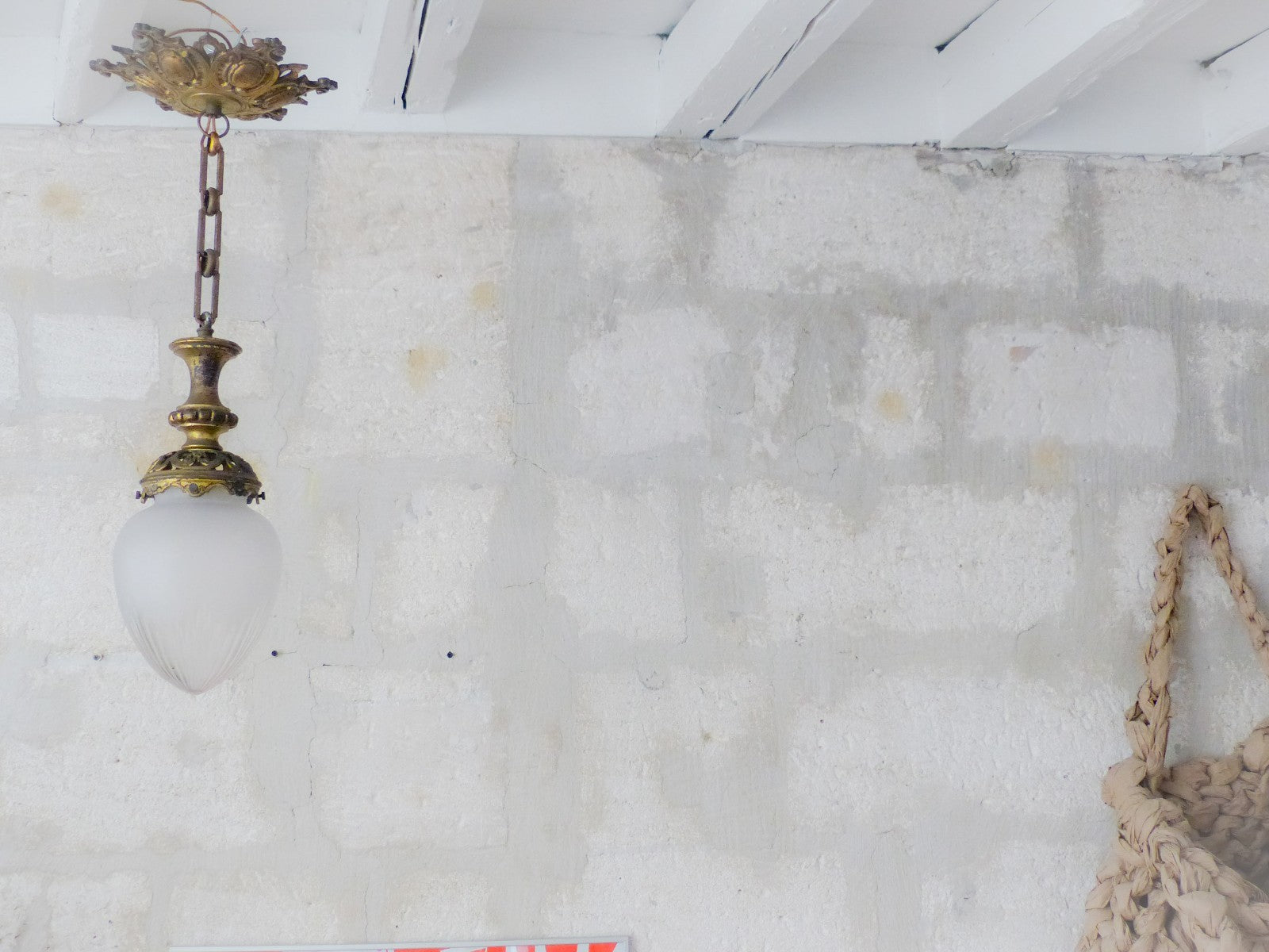 Approx. overall 55cm high, 15cm diameter of the glass, 22cm diameter the roof piece,