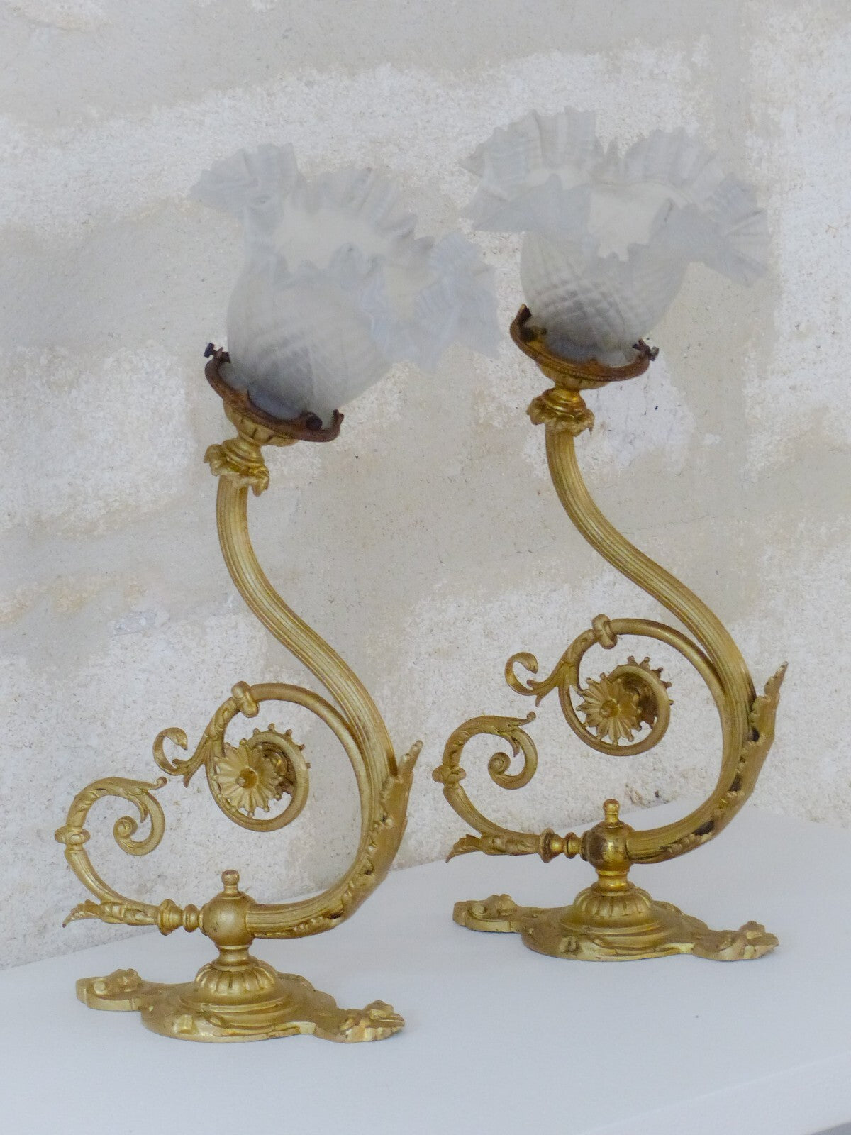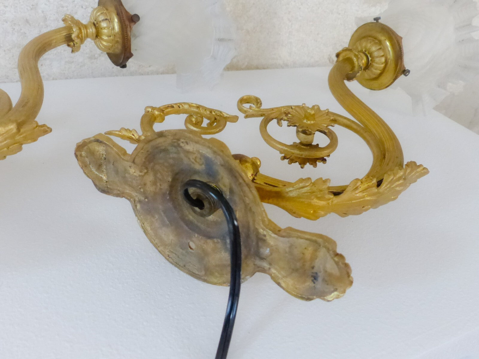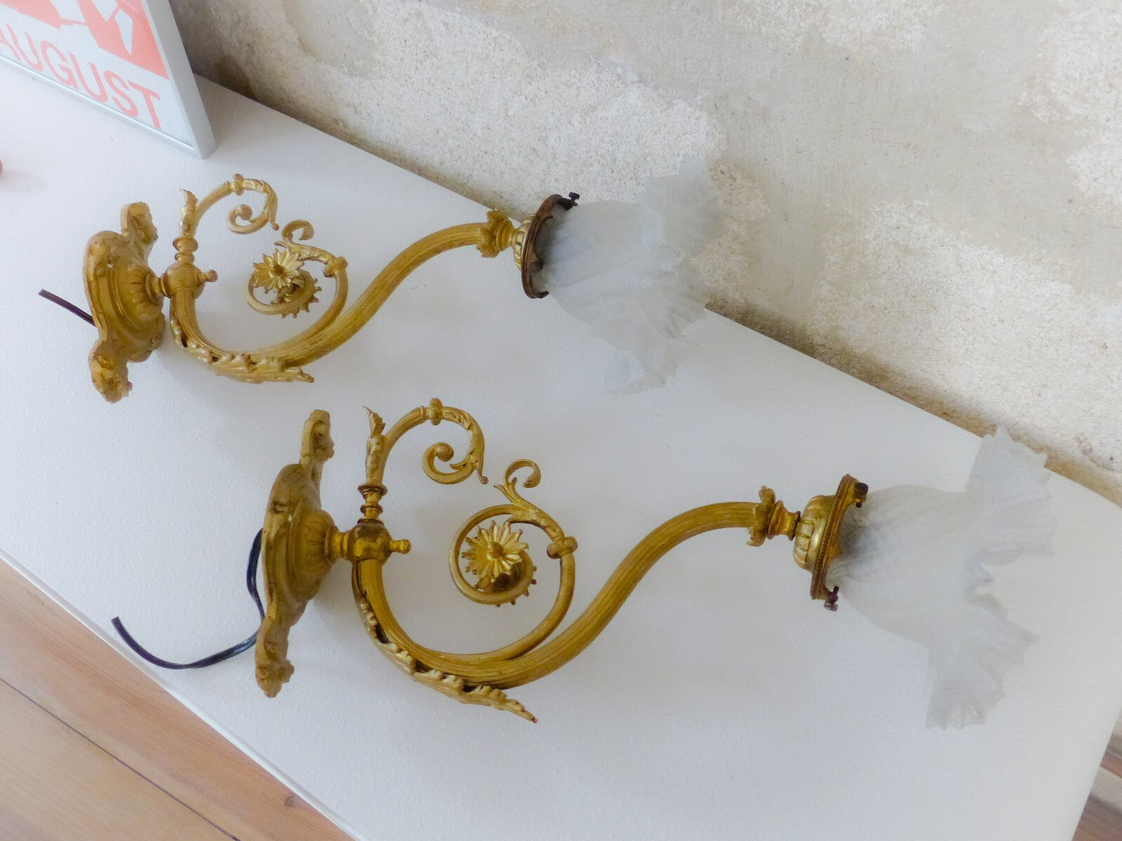 Gorgeous antique pair of wall light, sconces made of gilded bronze & brass.