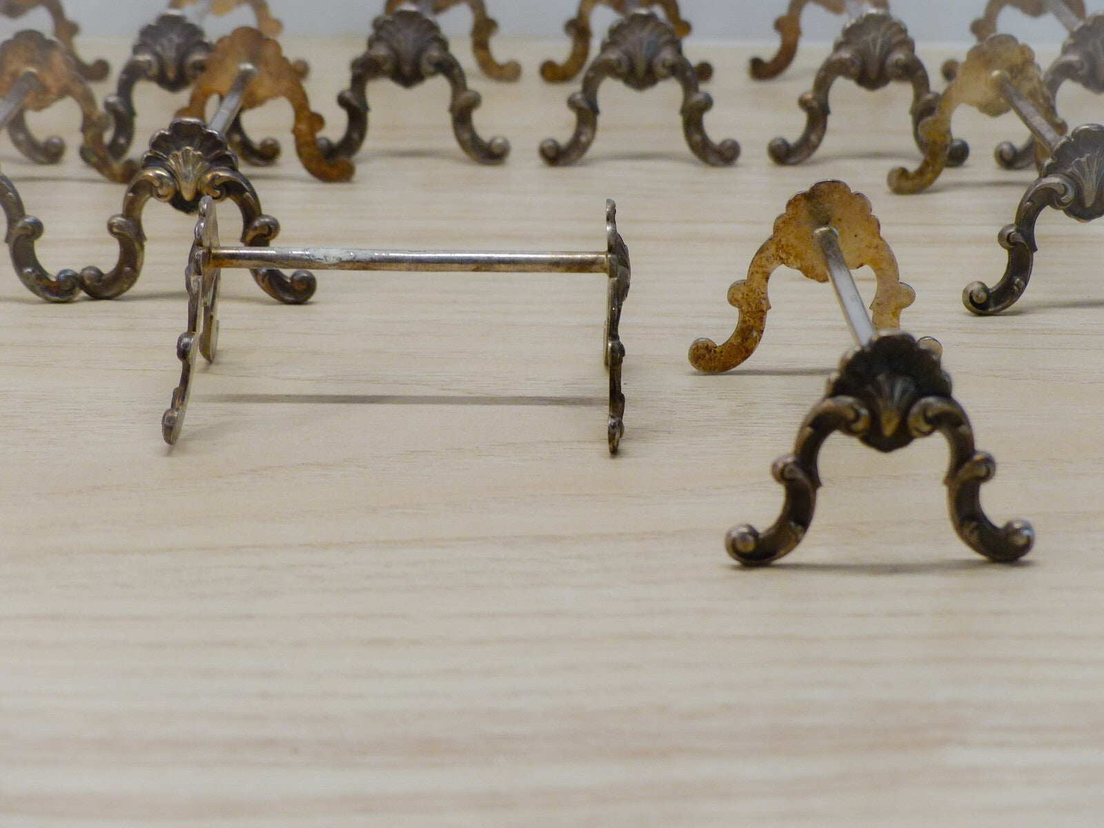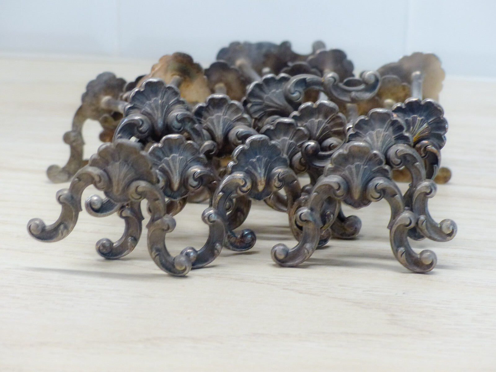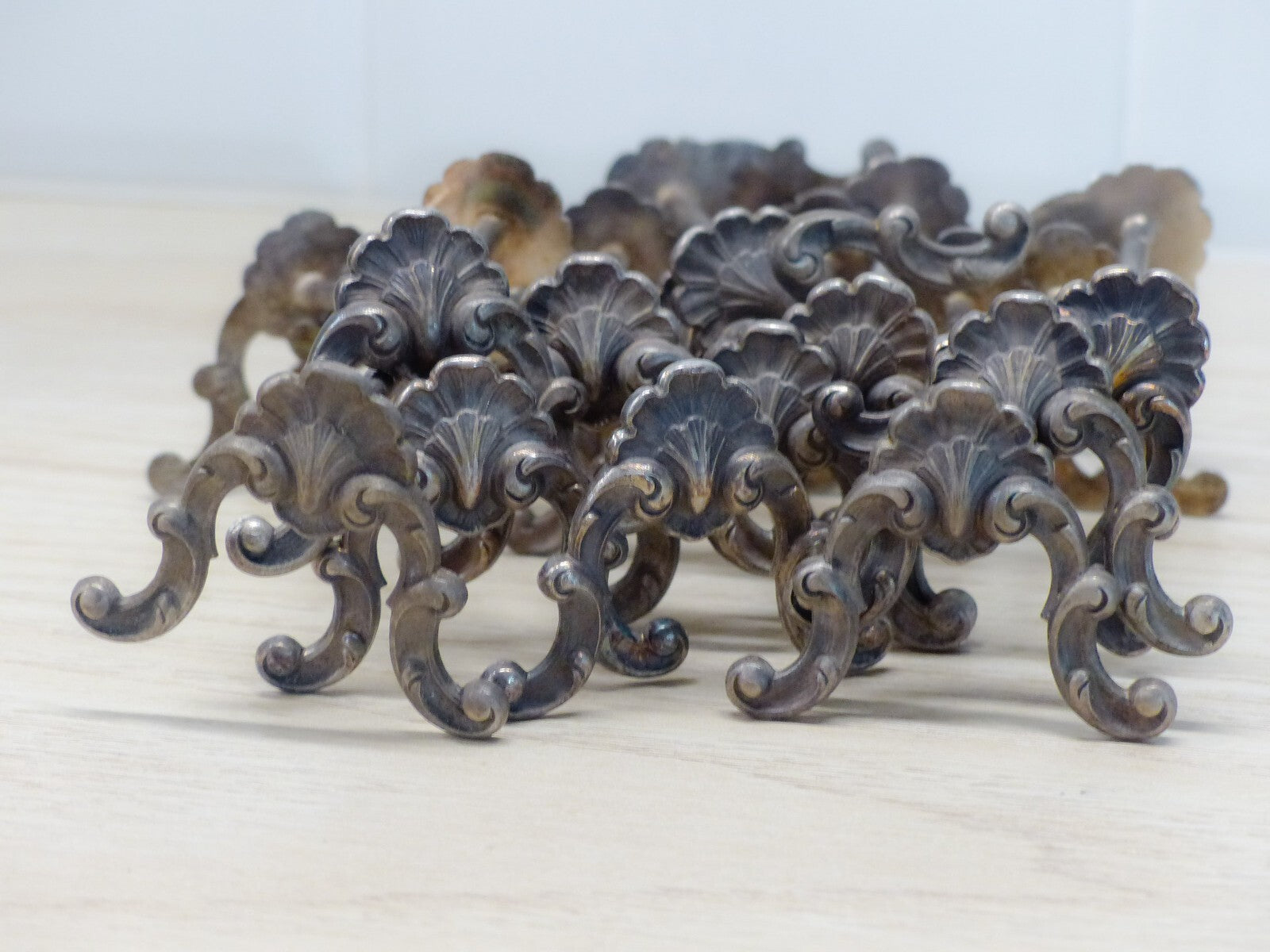 Antique set 12x French Knife Rests Silverplated Shell Louis XV Rococo 1900s