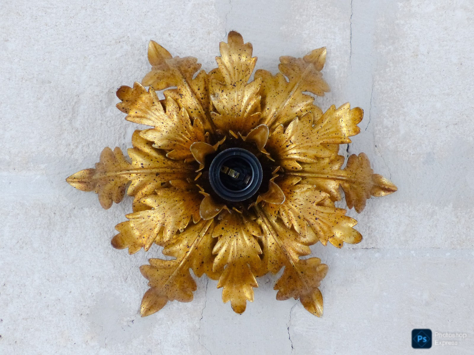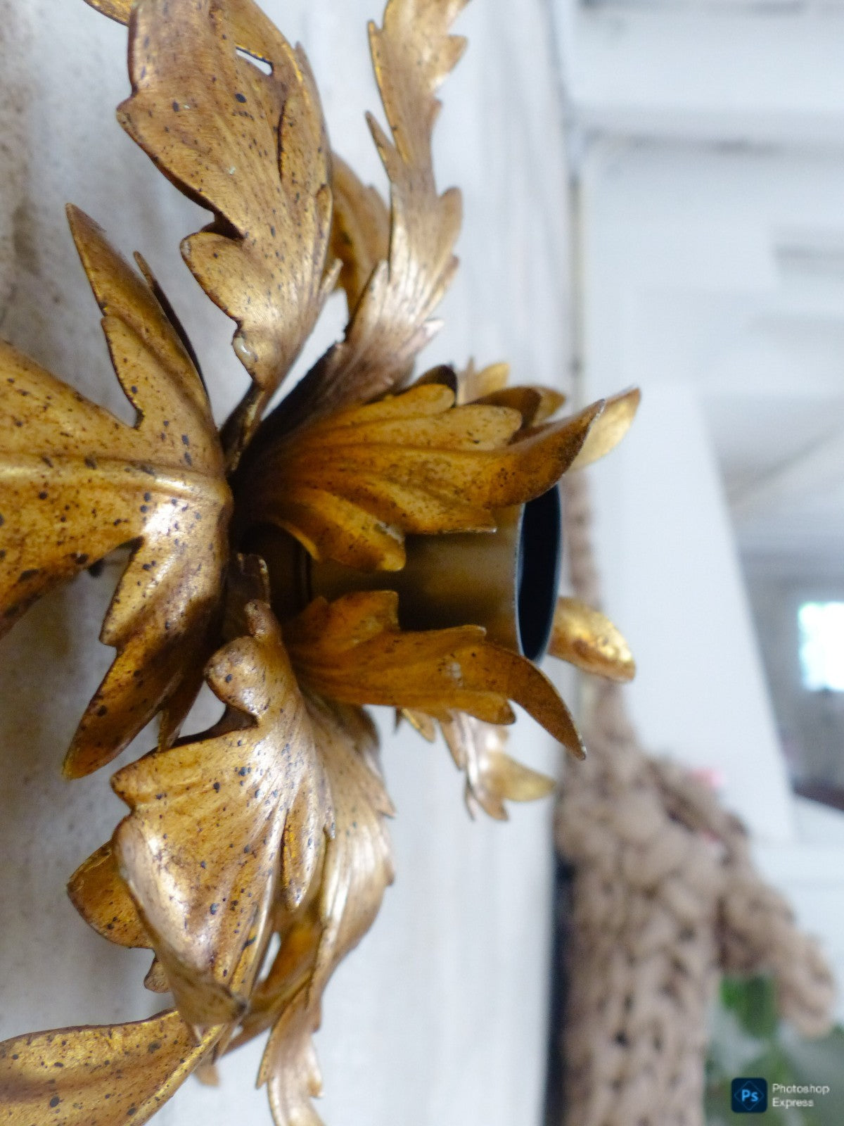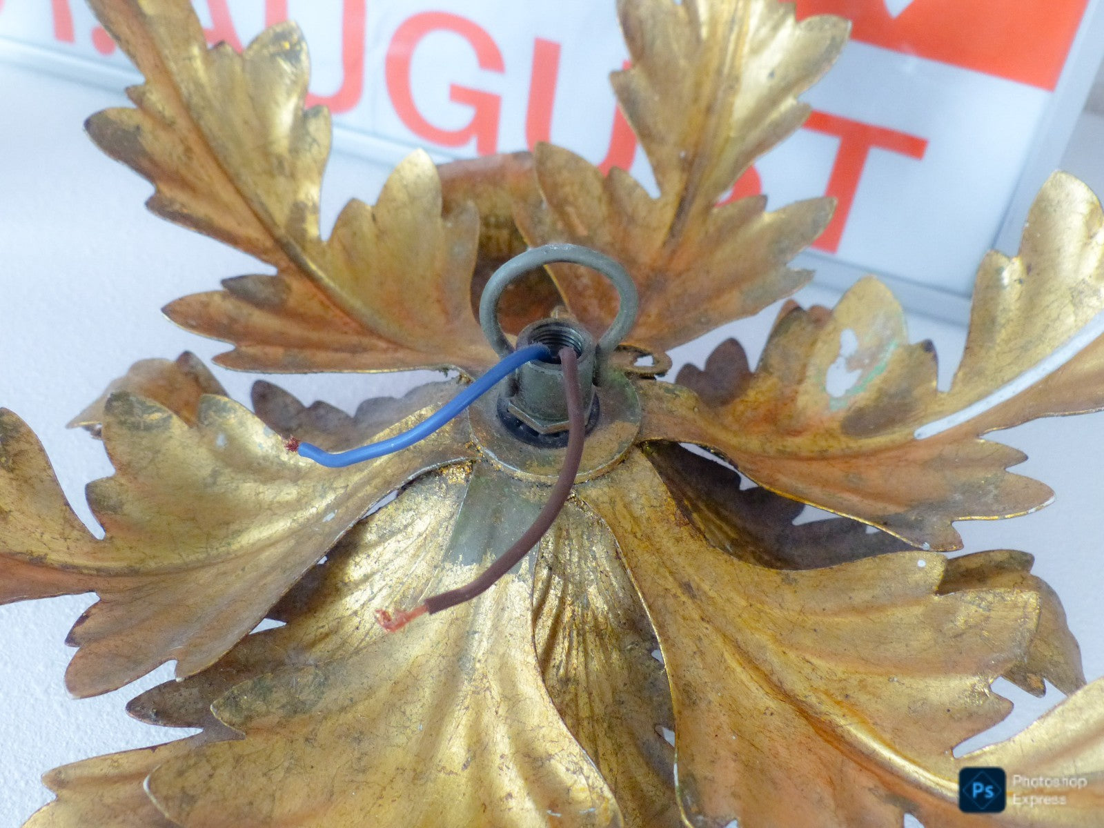 Gorgeous Italian (1980's) gilded tole wall light or ceiling,