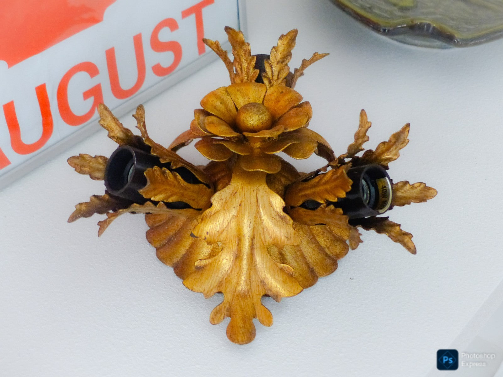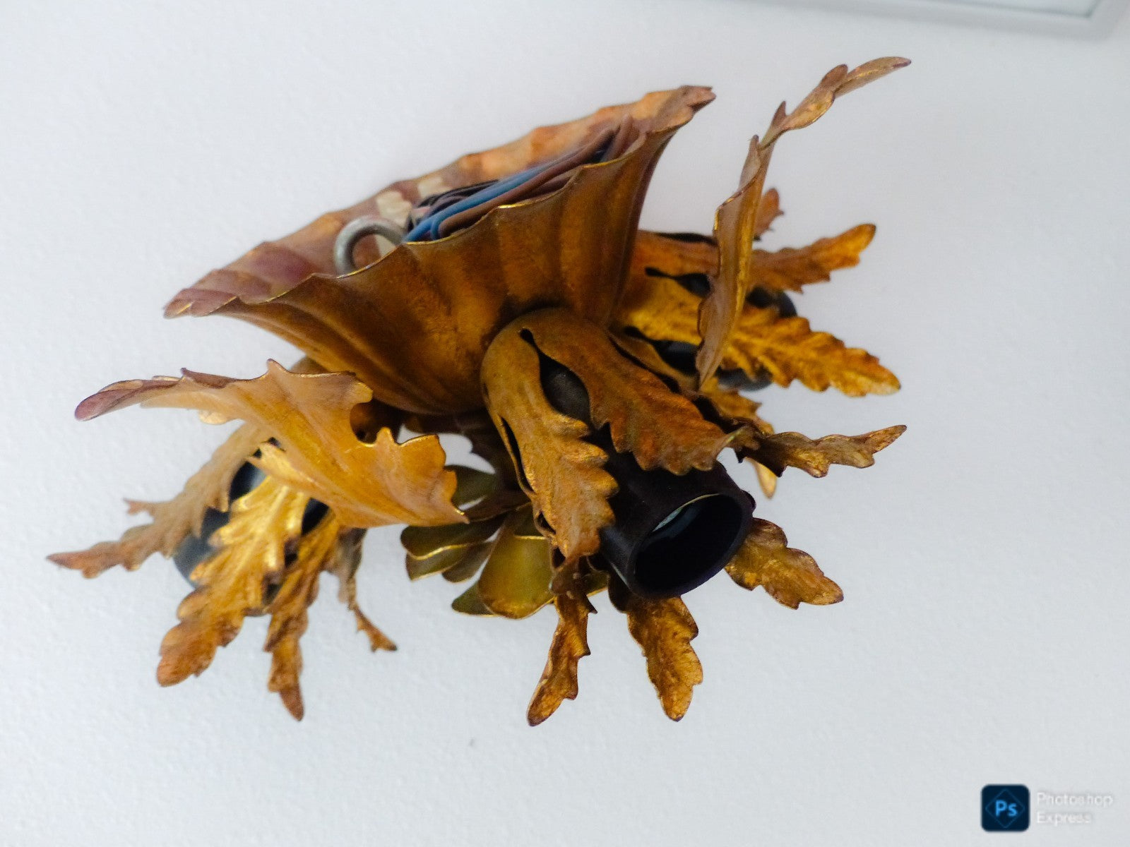 Gorgeous Italian (1980's) gilded tole wall light or ceiling,