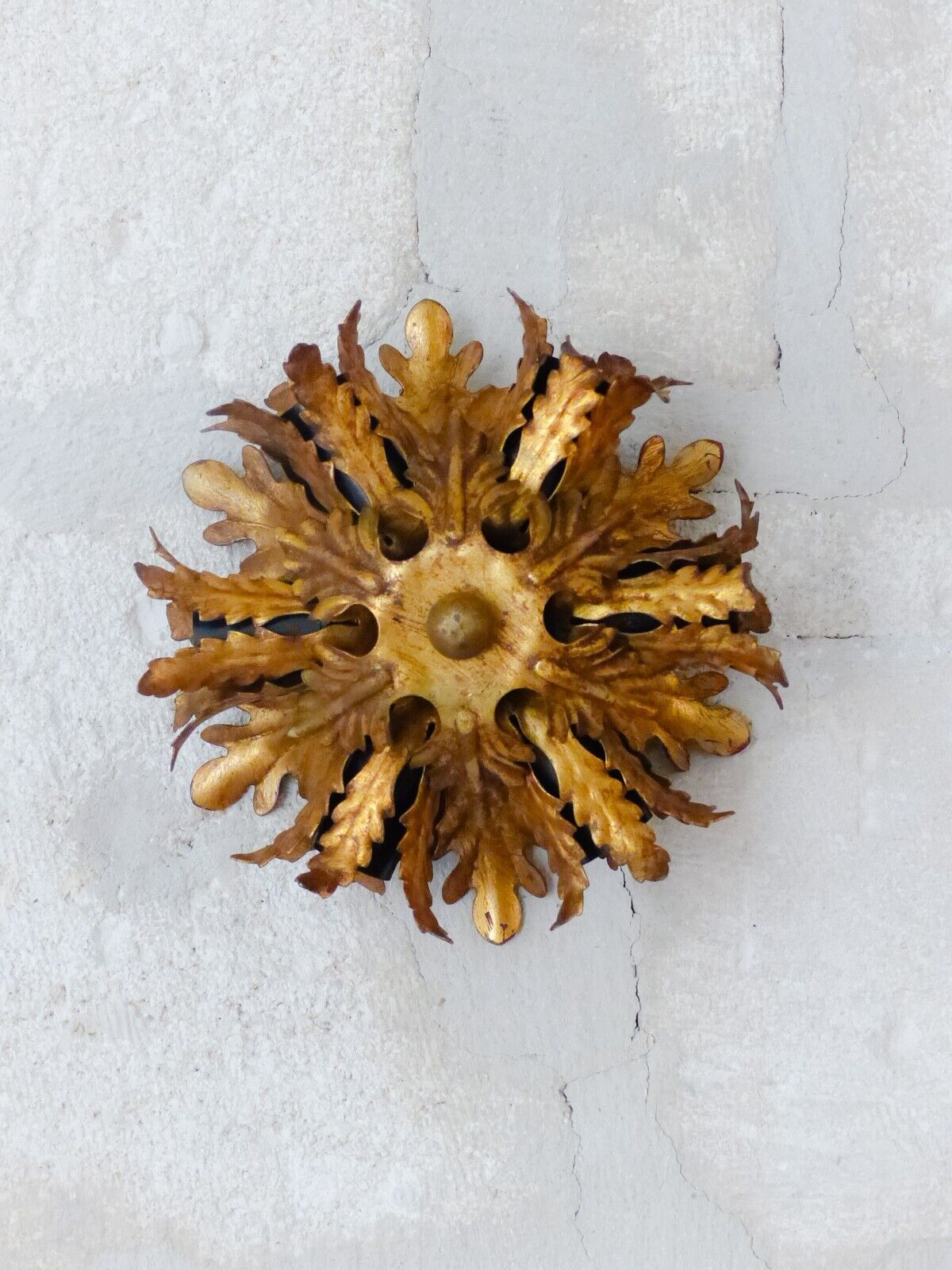 Gorgeous Italian (1970's) gilded tole wall light or ceiling,