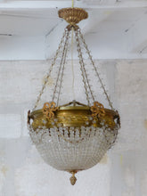 An adorable French Louis XVI style chandelier from the 1920th. The central lighting cluster is surrounded by beautiful beaded garlands and an elegant rim with bow of Ribbons decor.