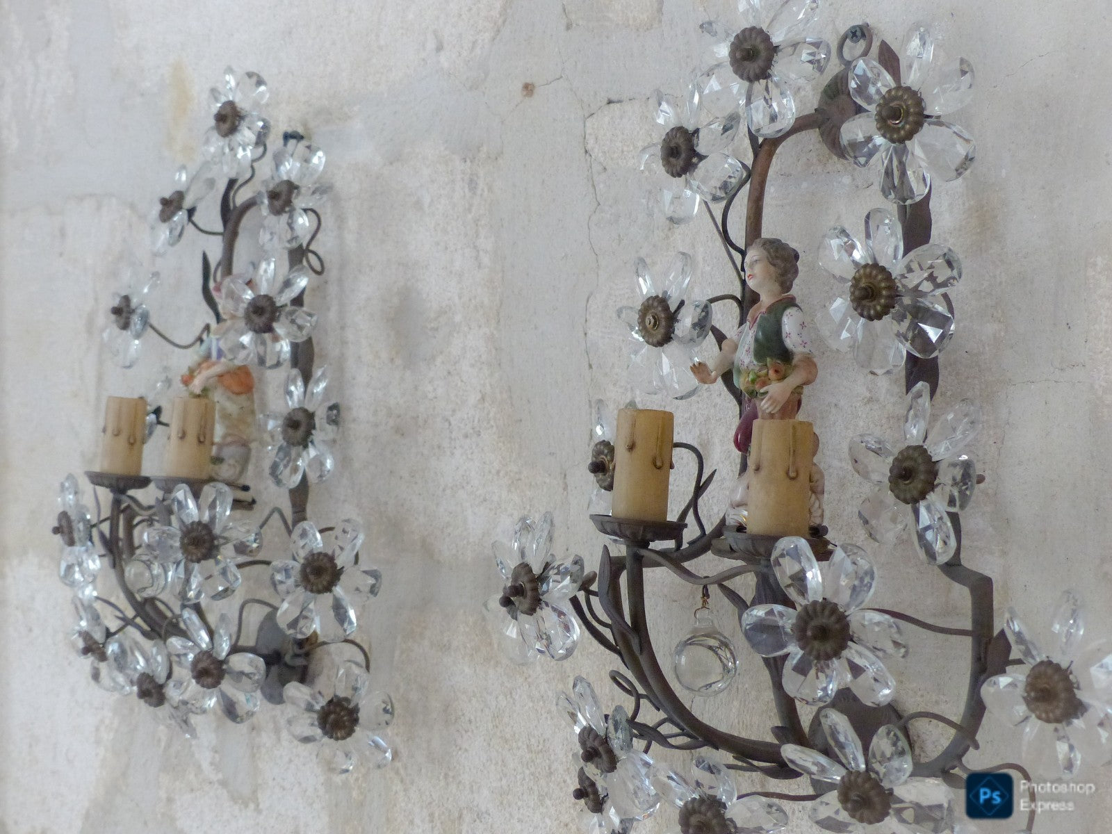 An absolute stunning wonderful loaded pair of wall lights. Housing 2 lights each.