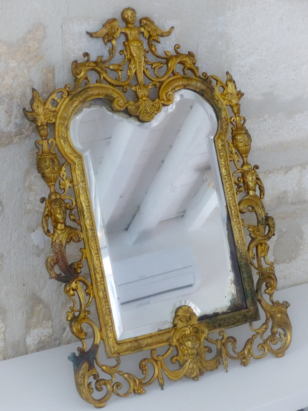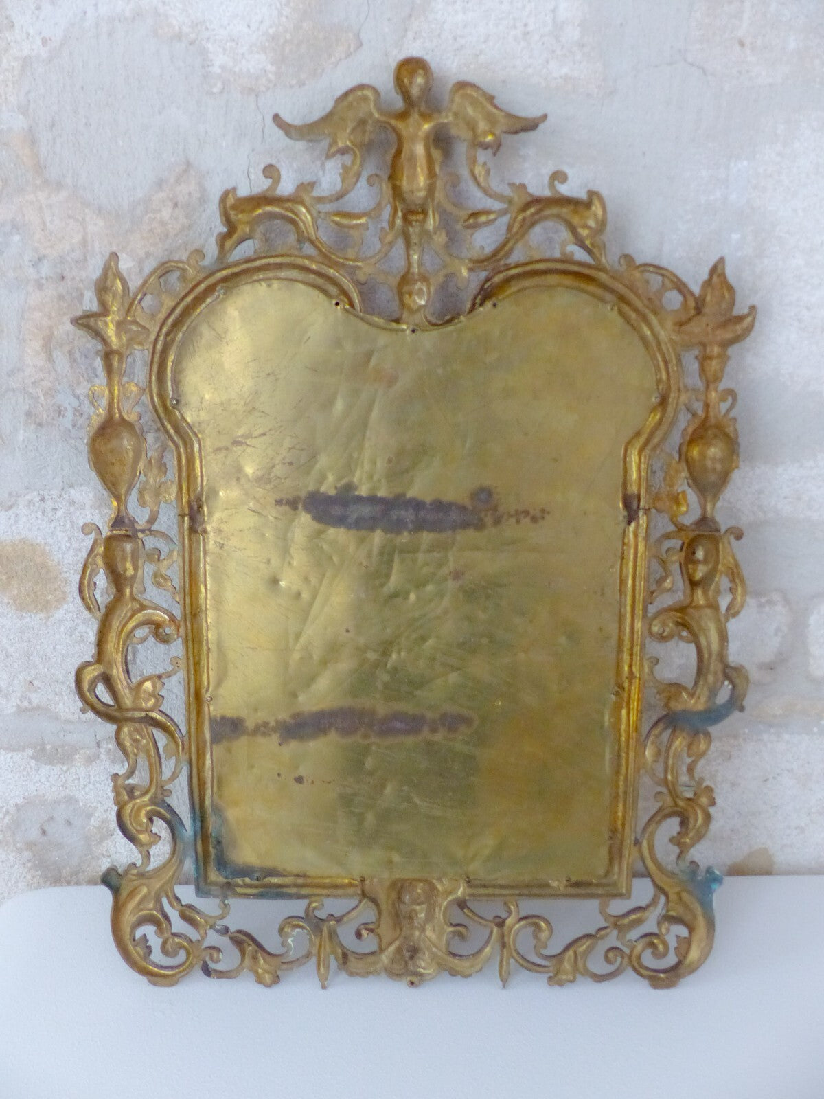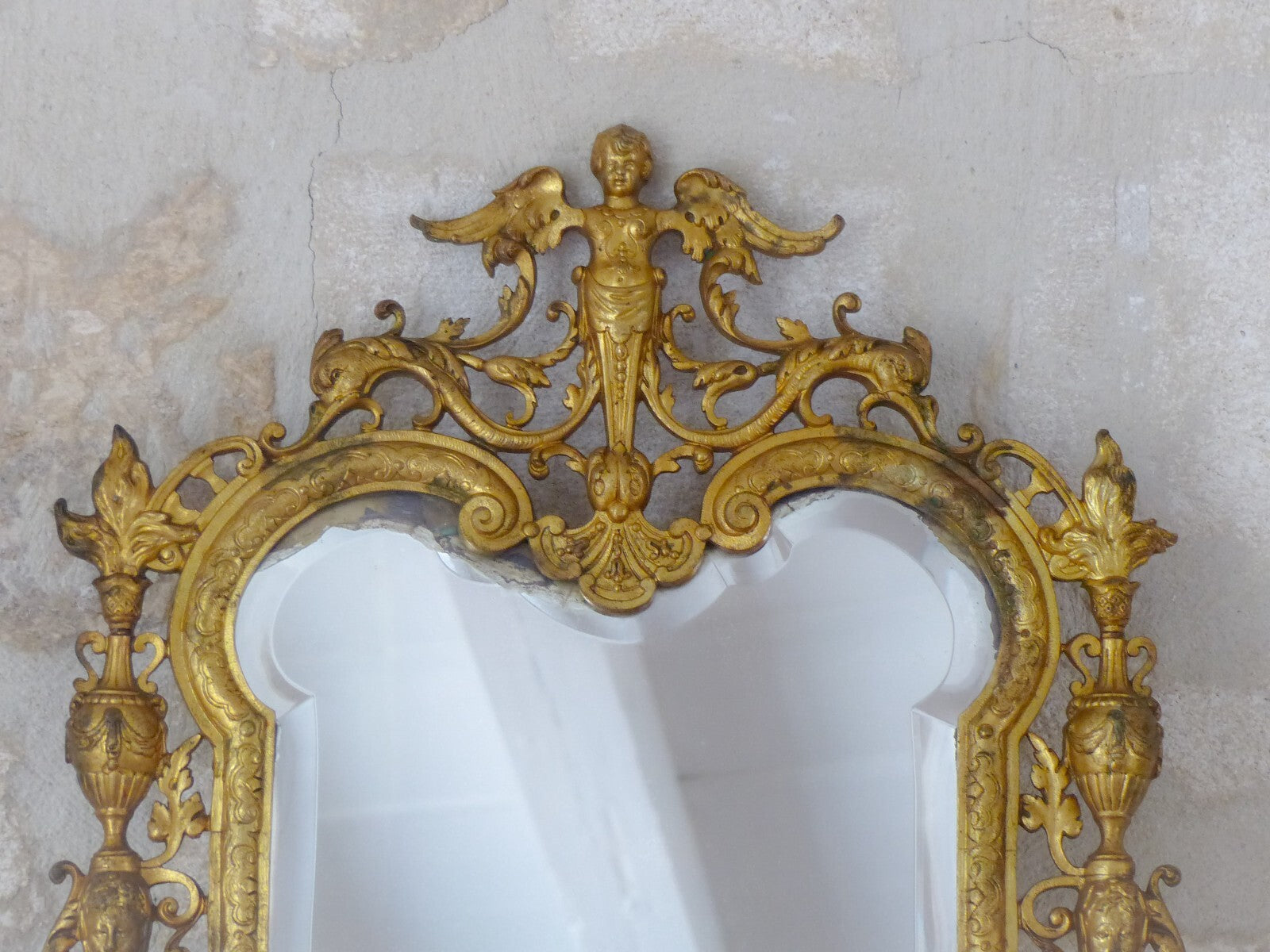 The intricate gilded bronze frames have a large cartouche at the top of the frame that depicts an angel.