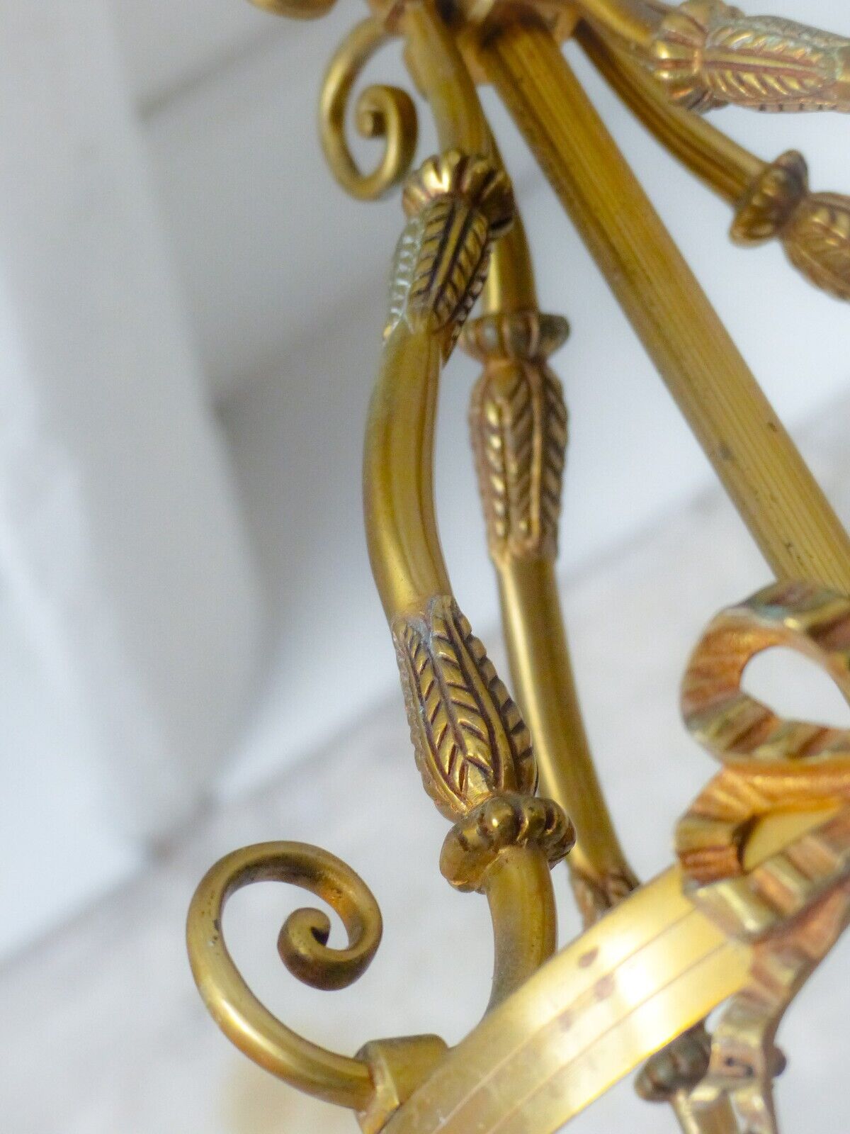 Crafted from gilded bronze and brass, this French-style piece boasts a beautiful ribbon design and is sized to make a statement.
