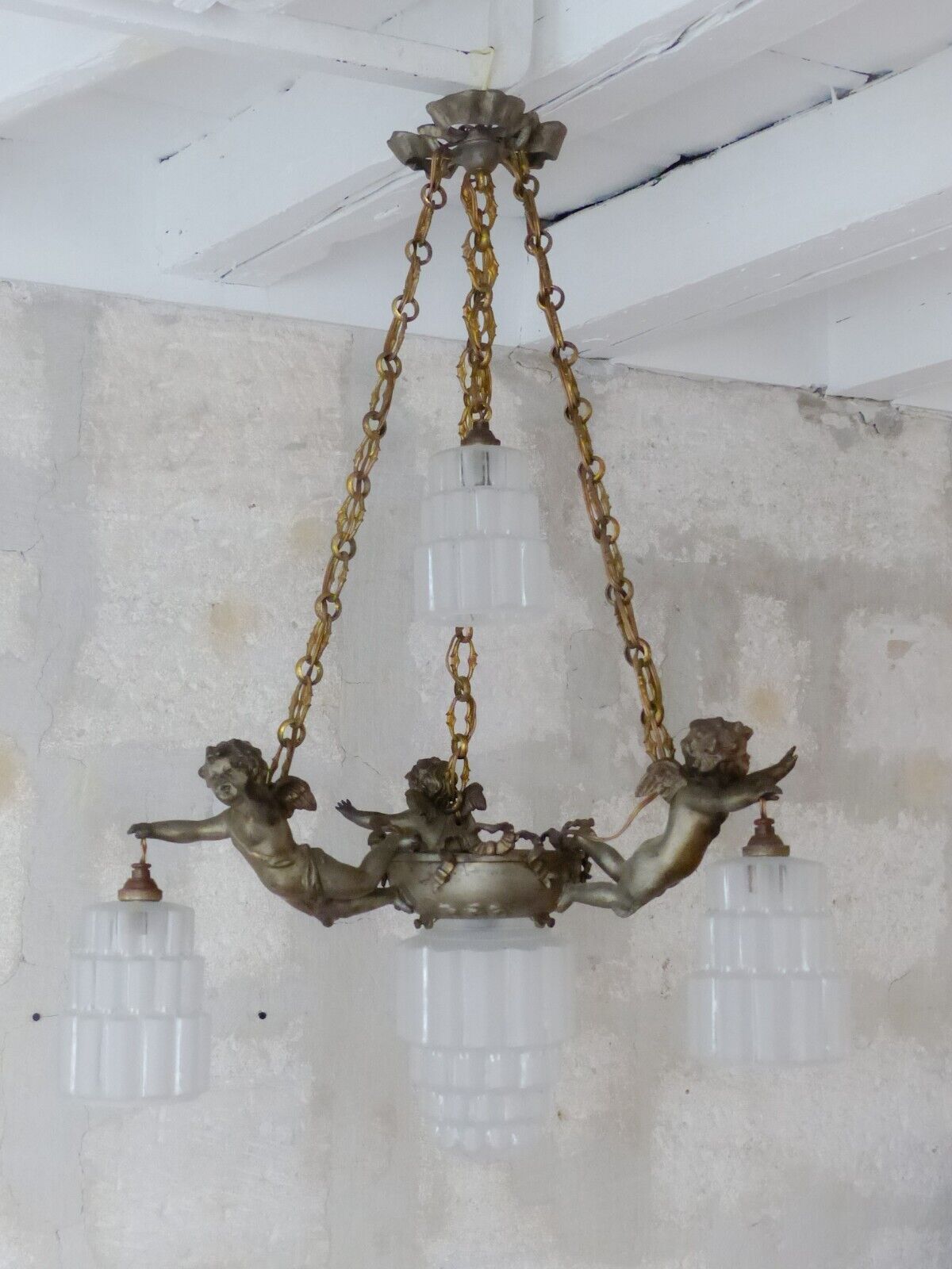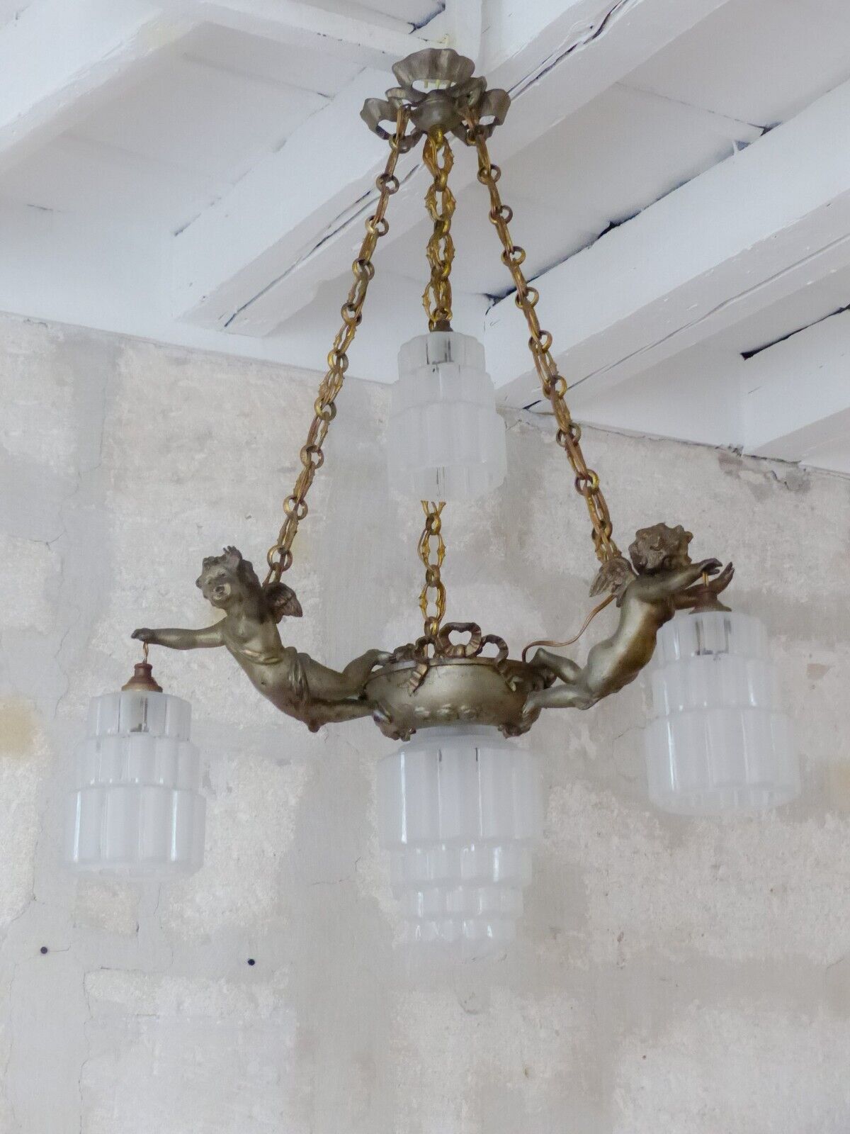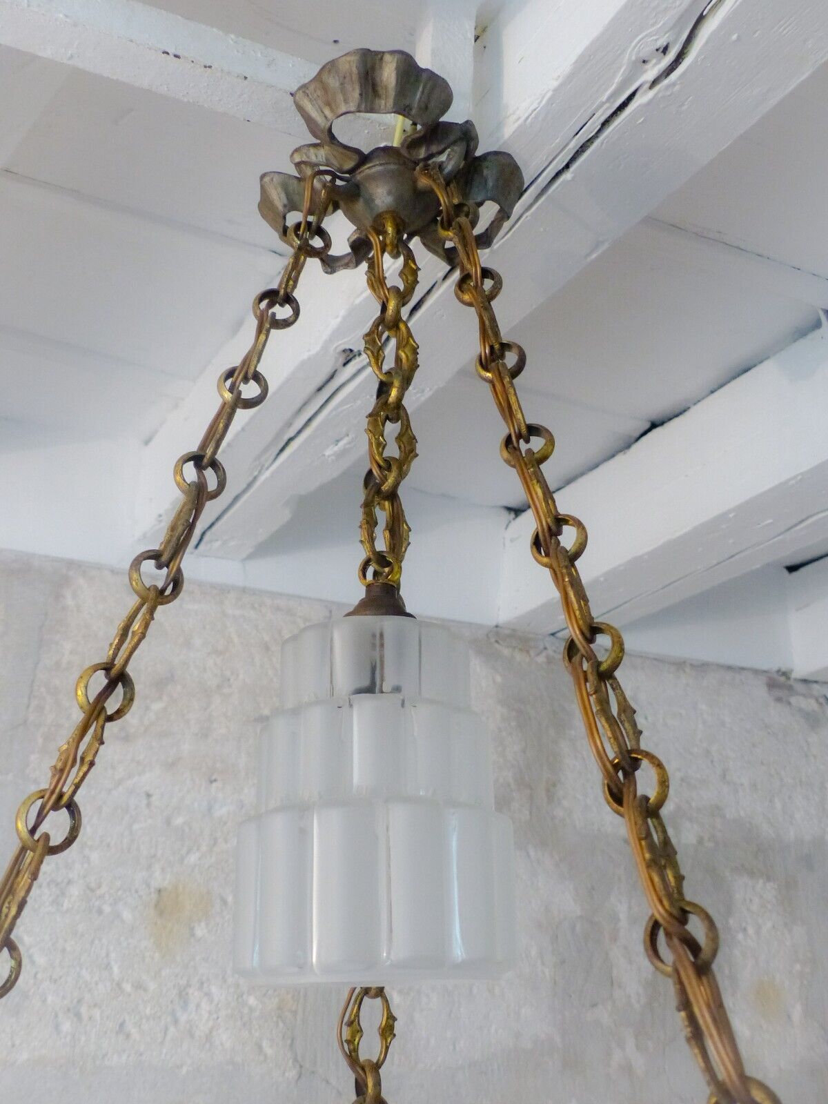 Offered for sale is a 1900's French metal chandelier in the Louis XVI style.