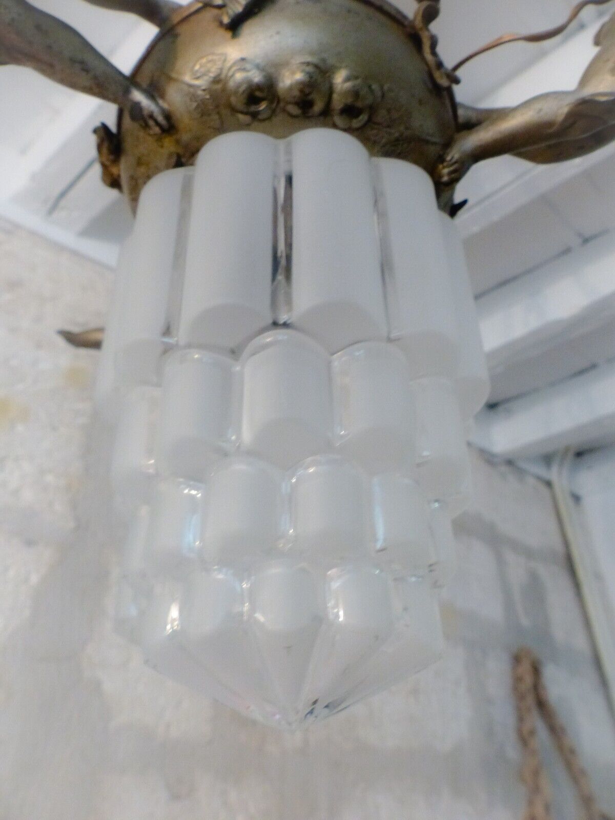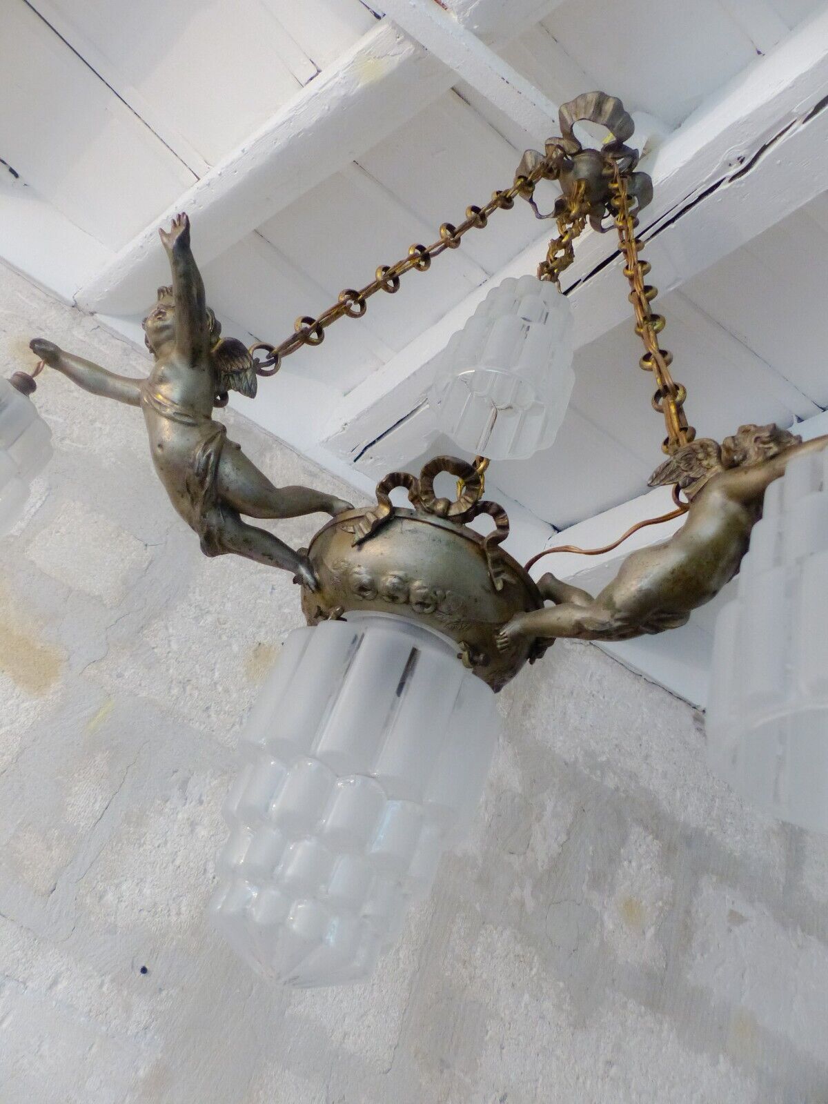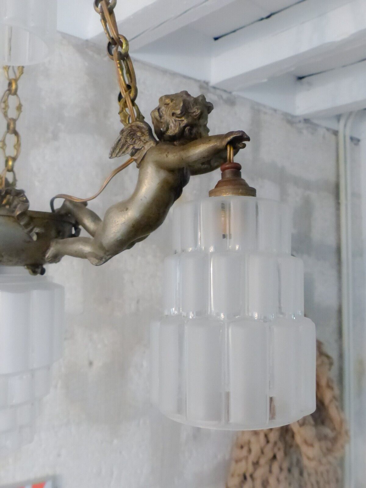 Offered for sale is a 1900's French metal chandelier in the Louis XVI style.