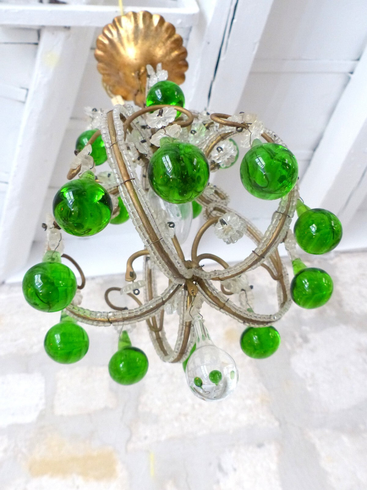 Green glass drops and beads.