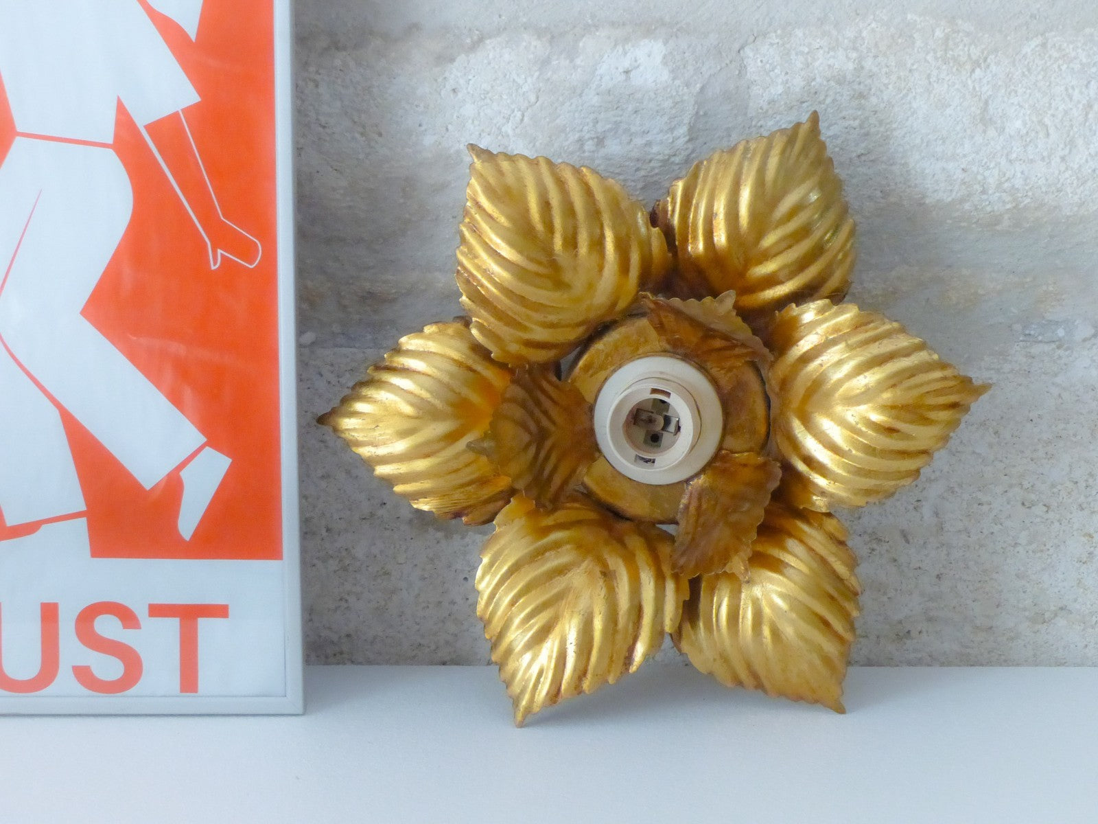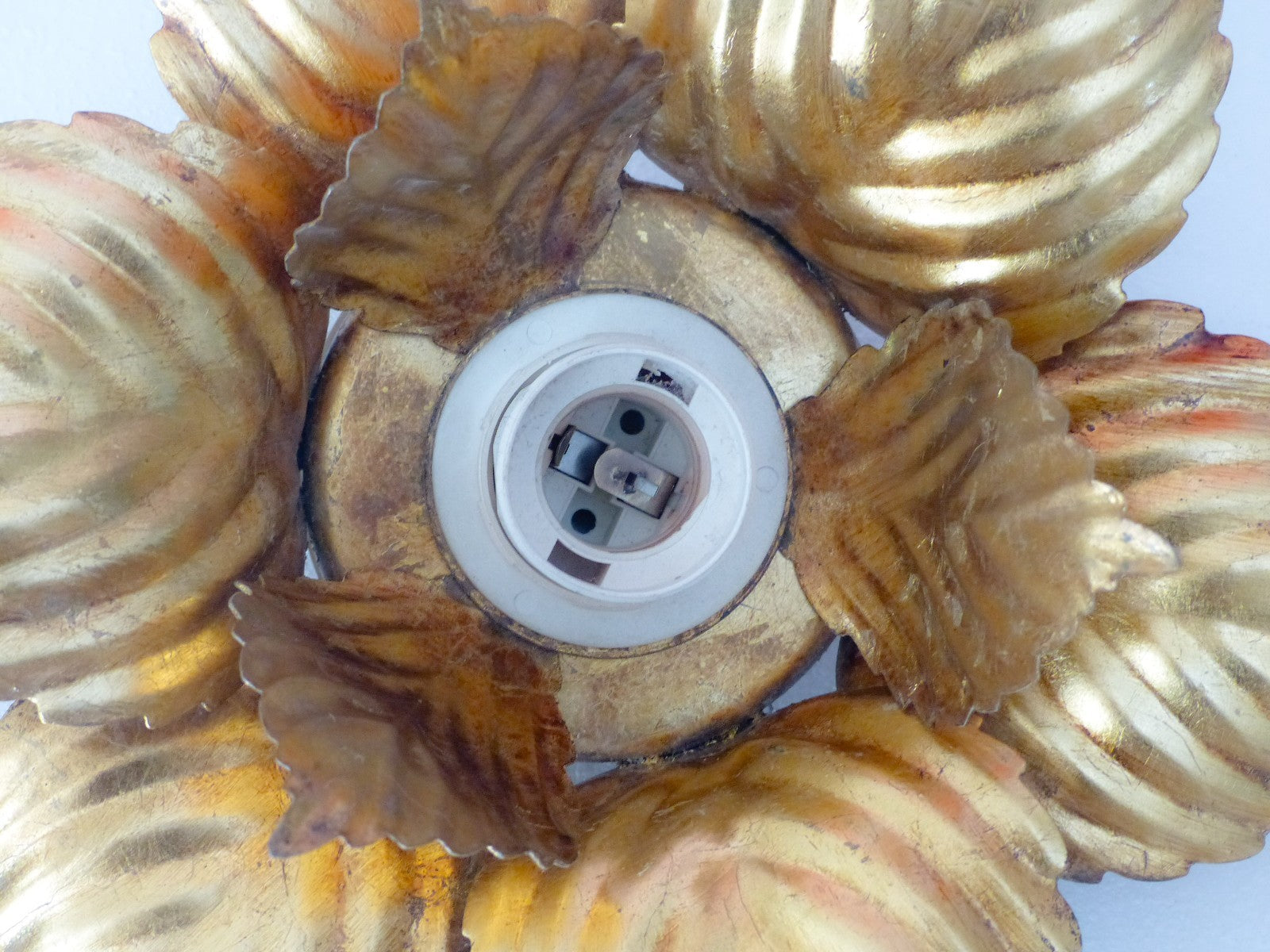 Gorgeous Italian (1980's) gilded tole wall light or ceiling,