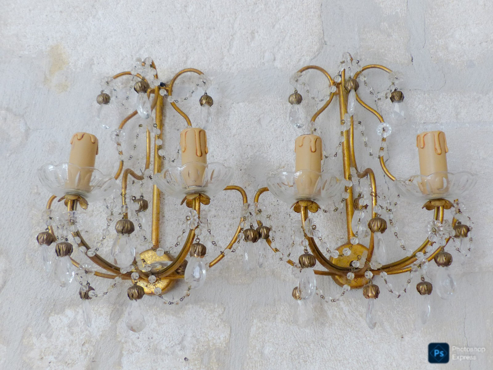 An absolute stunning wonderful loaded pair of wall lights. Housing 2 lights each.